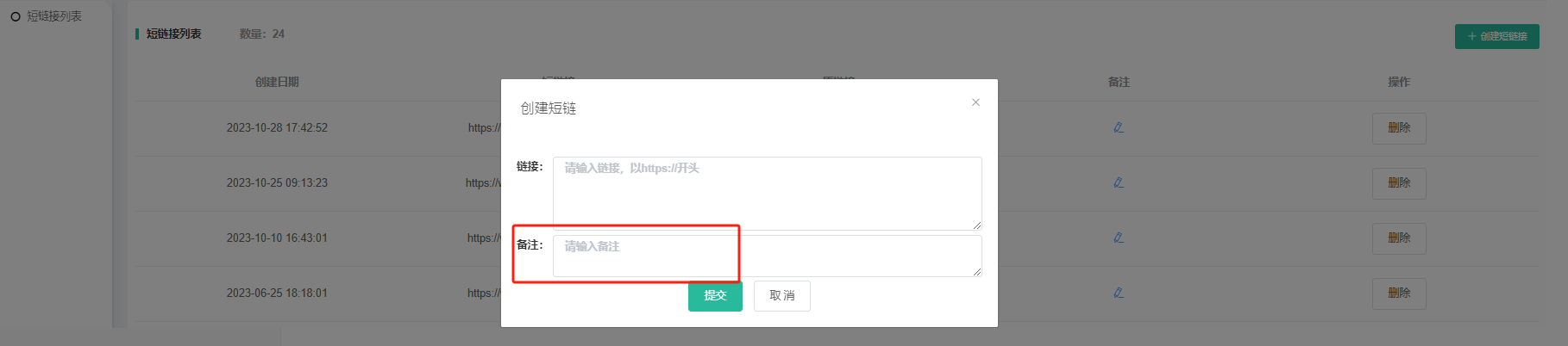 增加备注,便于区分创建链接的内容,如下图所示。