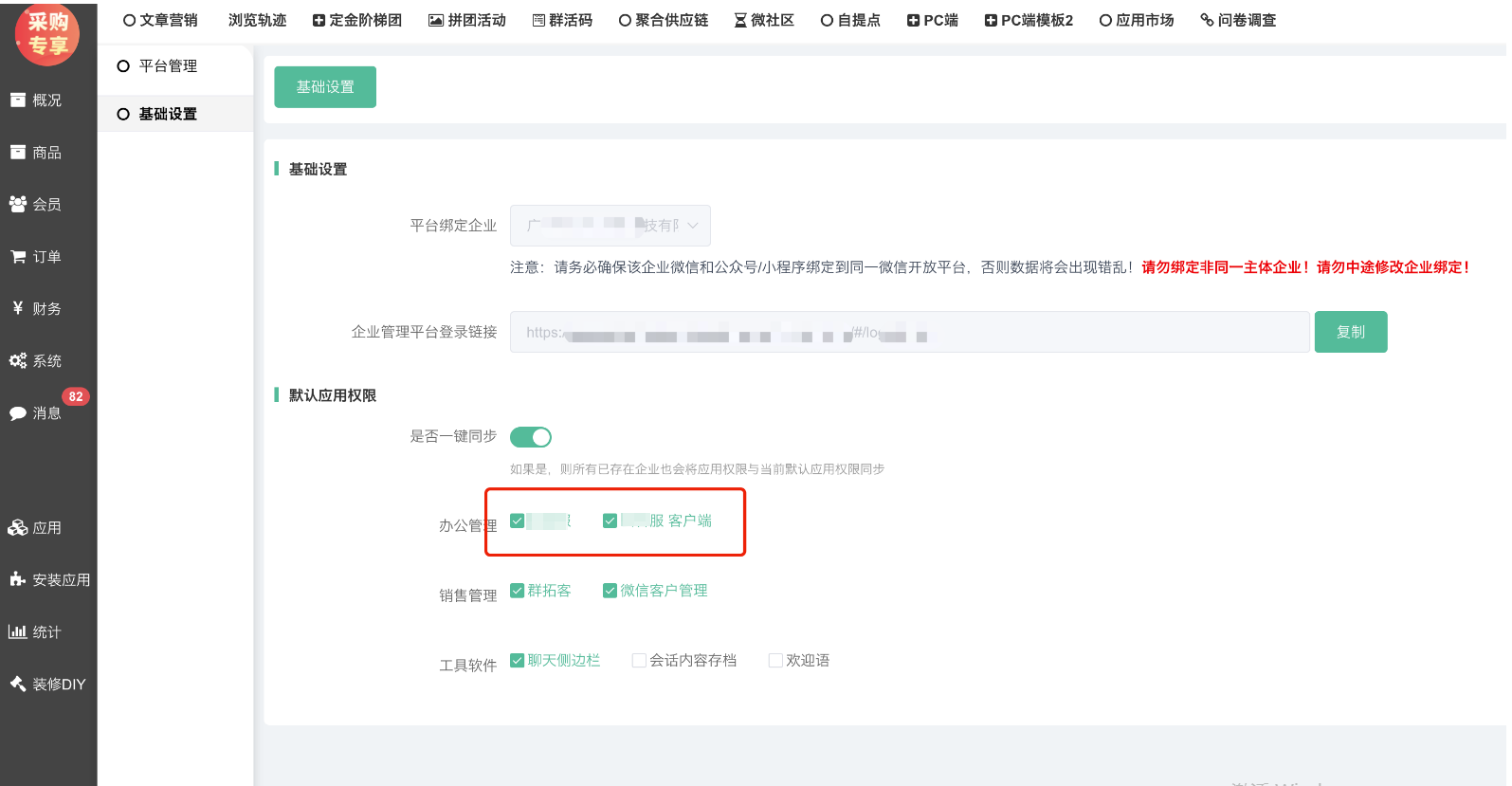 【总平台】添加企业/设置企业在线客服应用权限