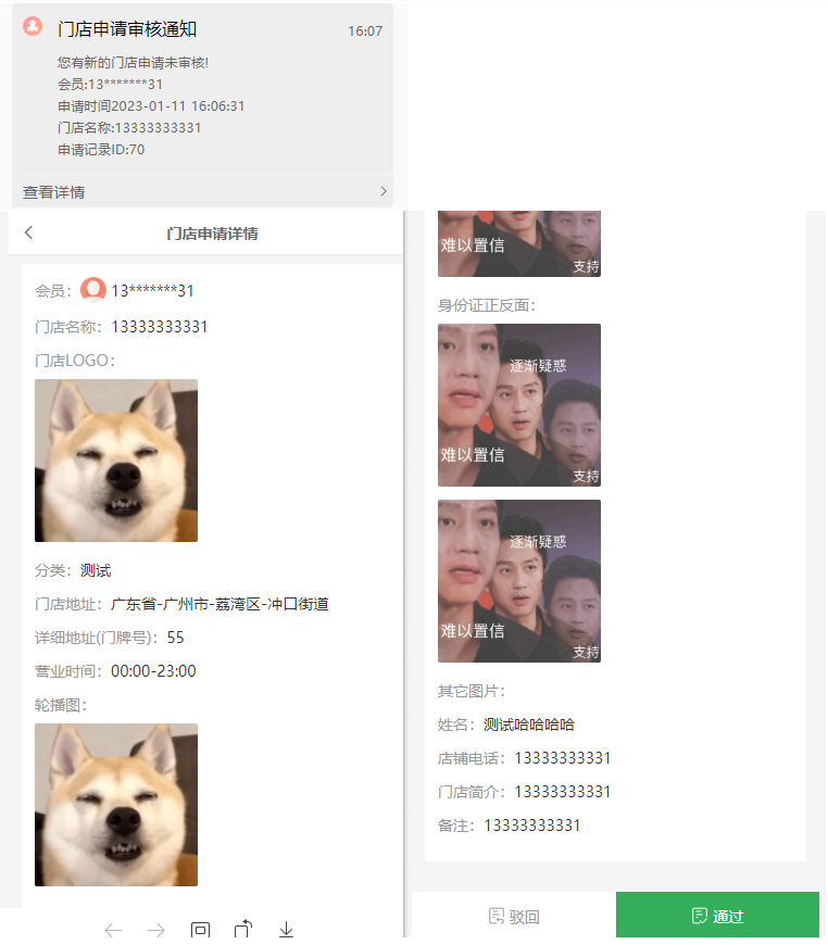 12、审核通知,勾选后设置好通知后下级申请成为门店,上级可收到门店审核通知