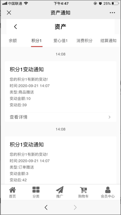 1.入口:会员中心--消息,如下图: