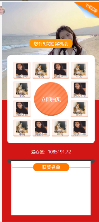 平台添加多个抽奖活动,九宫格形式抽奖;
