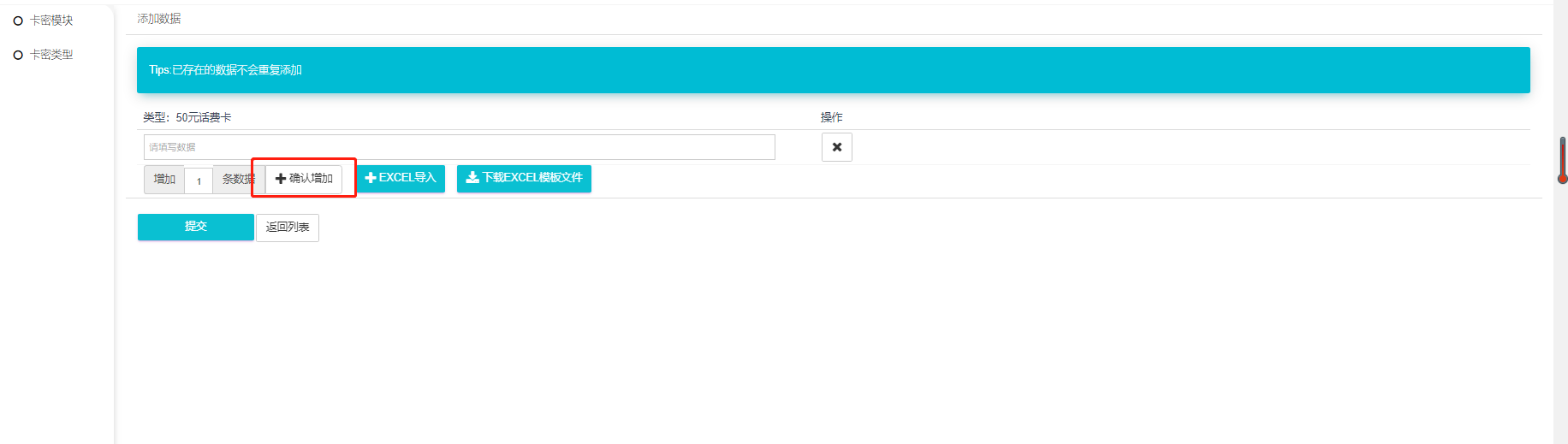 添加好后的卡密模块也可以自行编辑卡密名称