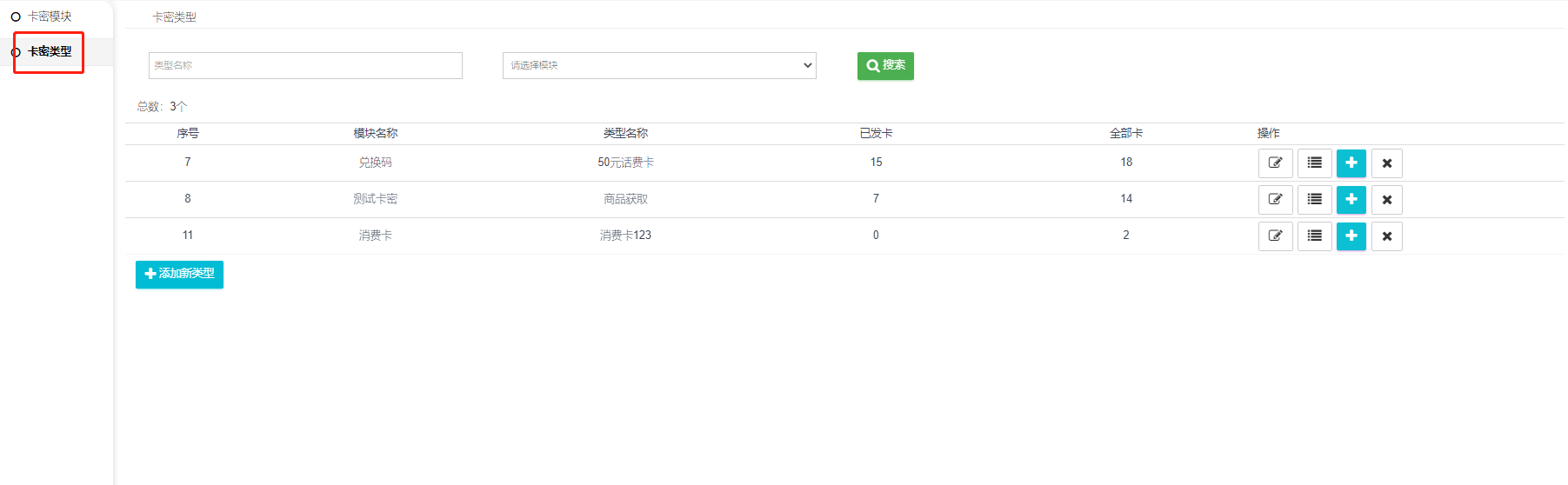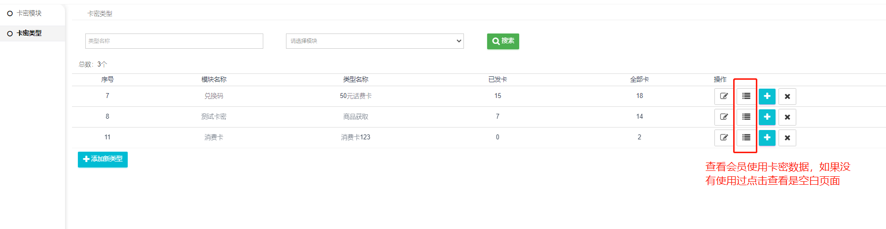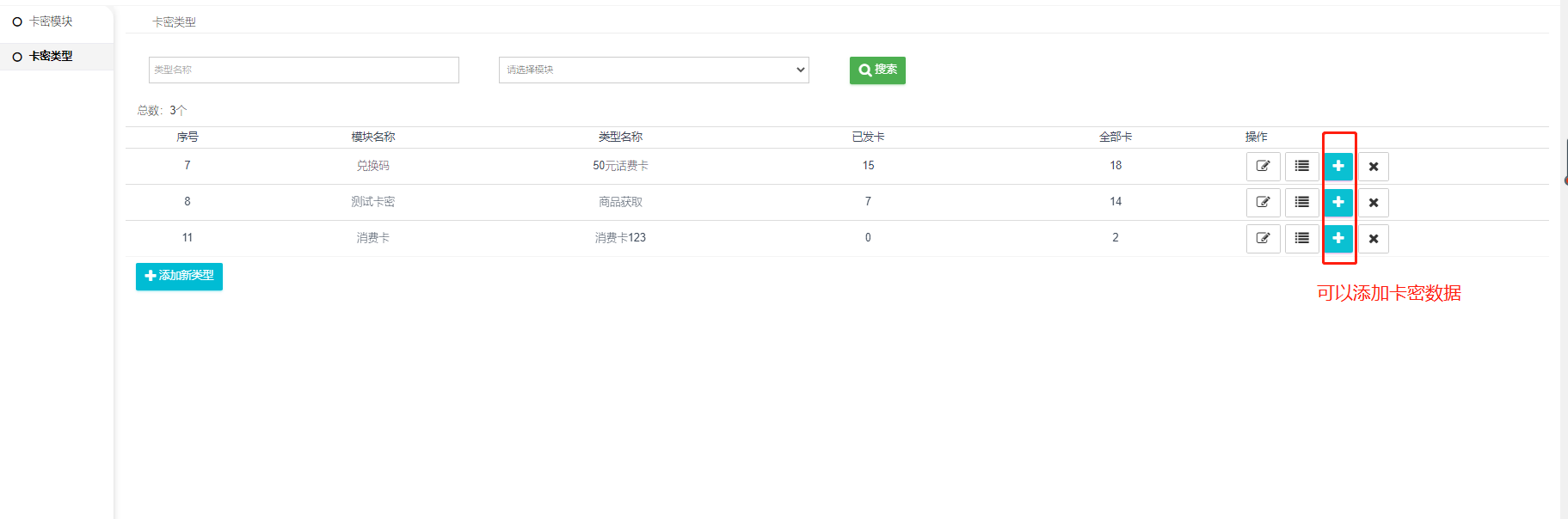 二  、添加好卡密模块,查看卡密类型列表